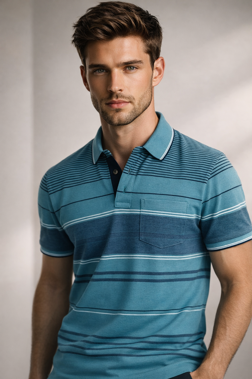 Azure Crest Stripe Shirt – Men’s Trim Fit Blue Button-Down