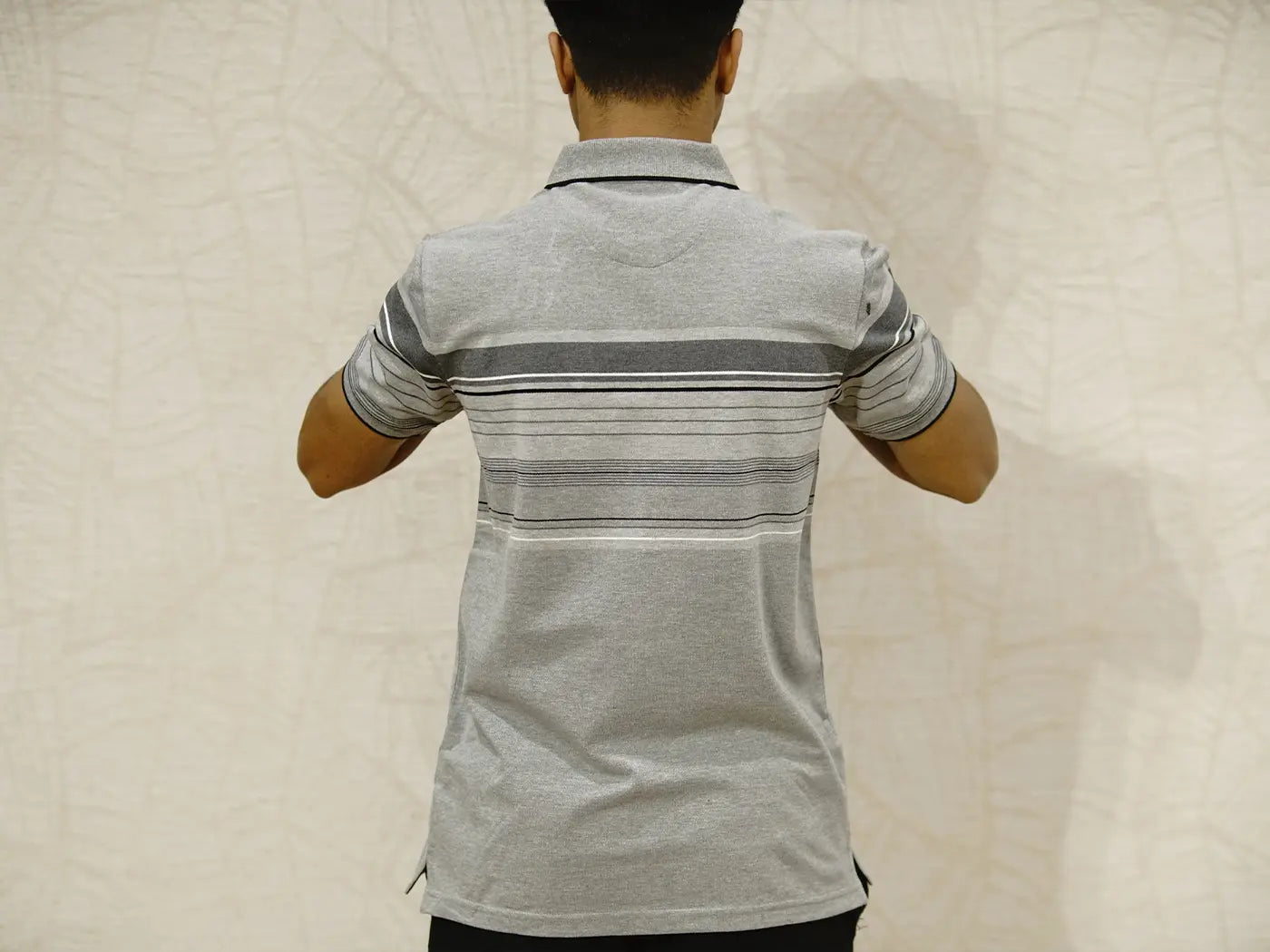 Black and White Hair Stripes on Ash Polo
