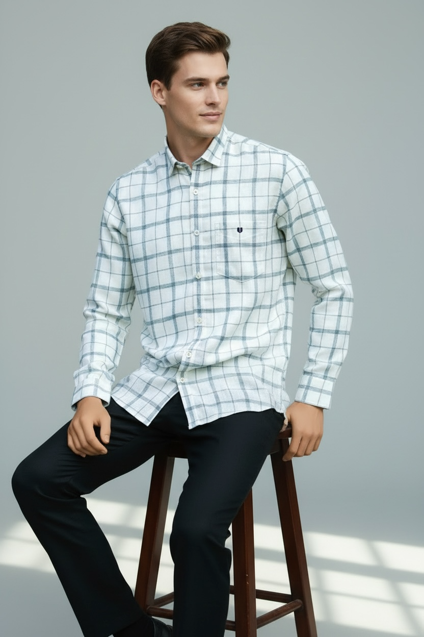 Seafoam - Men’s Trim fit Classy Green Checked Smart Casual